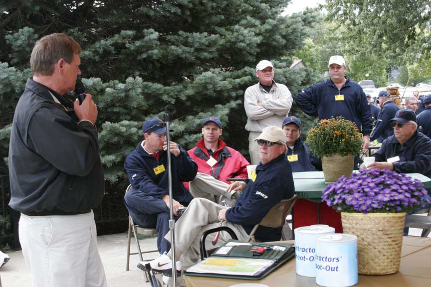 At 1 p.m. Tuesday, we drew the names of 18 contractors to fill out six, three-person teams for the Contractors' Shoot-Out. The competition commenced following the Putting Championship. Each participant hits the first tee shot of the five-hole event, and shots are alternated from that point forward. The highest scoring team is eliminated on each hole until one is left