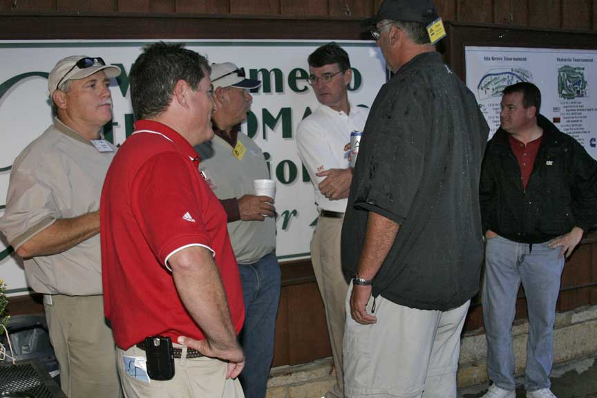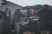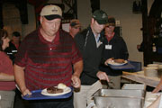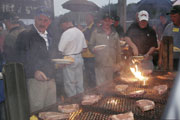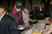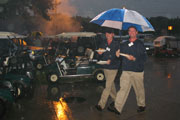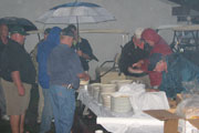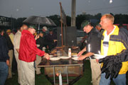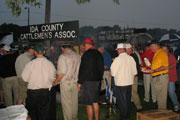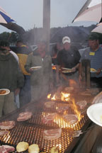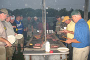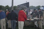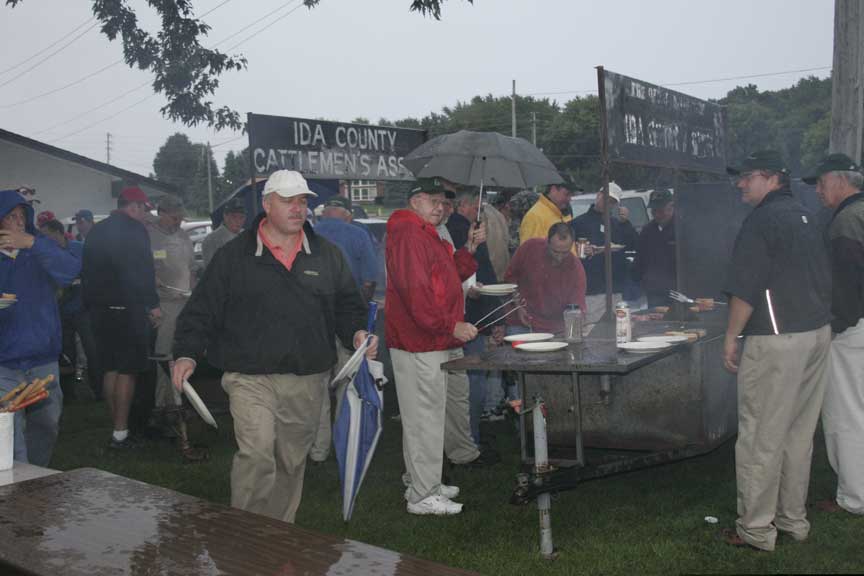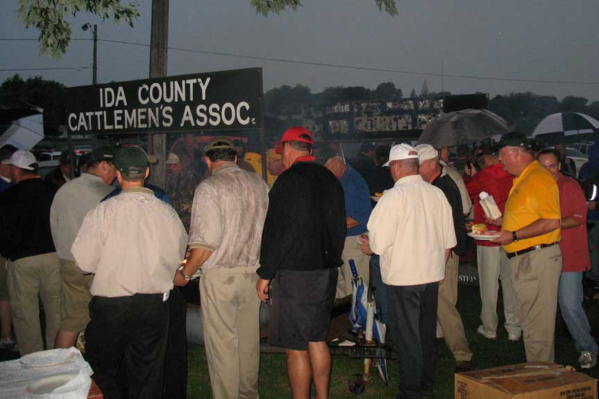 Following Chuck "The Hit Man" Hiter's Show and the Contractors' Shoot-Out, the grills were stoked and ready to go for the Pride Of Iowa Steak Fry. A rain storm kept things interesting for our guests late Tuesday afternoon and into the evening. They could still grill their steaks or chicken breasts in the rain just how they wanted them, or they could let us do it for them. We had a large portable meat cooker on-site in case of inclement weather, and we used it to grill the steaks and chicken for those who would rather not stand in the rain and grill.