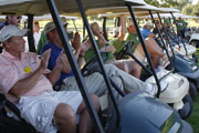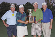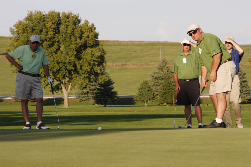 After the conclusion of the Scramble Tournament on four courses, the four champion teams returned to Ida Grove to compete in the "Grand" Champion Play-Off. Along with their course championships, the members of the overall champion team from this three-hole competition each received a cool "grand" in cash and a Waterford crystal golfer. This year's champions were from the Ida Grove course. Members of the team were Don Beaudoin of William Beaudoin and Sons, Inc., Denny Marschuetz of J.M Marschuetz Construction Co., Rick Blesi of Construction Equipment, and Gary Godbersen of GOMACO Corporation.