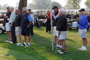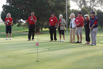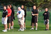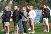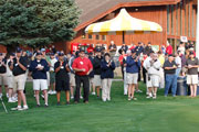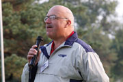 Gary Godbersen (holding microphone) welcomes everyone to GOMACO Invitational #29. |