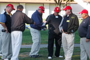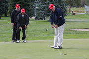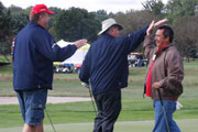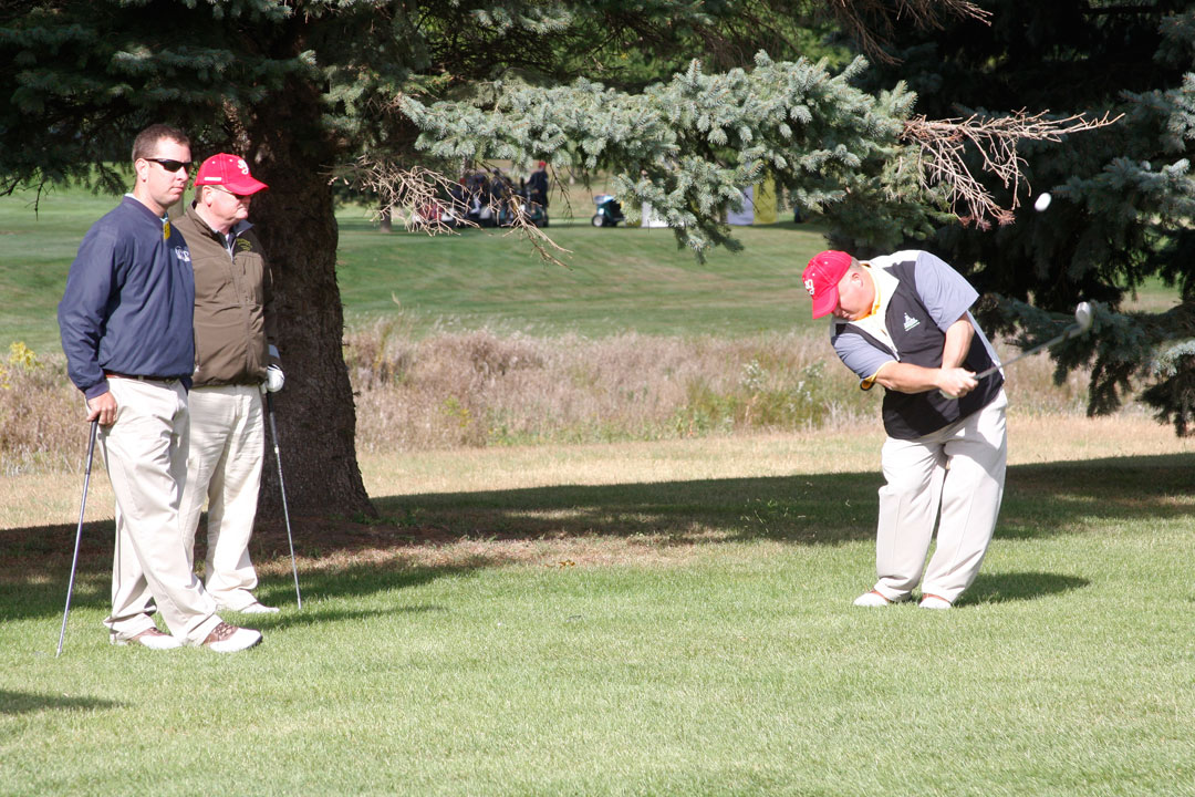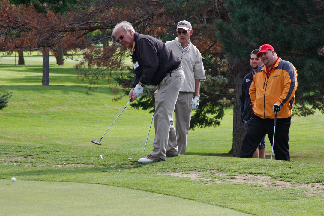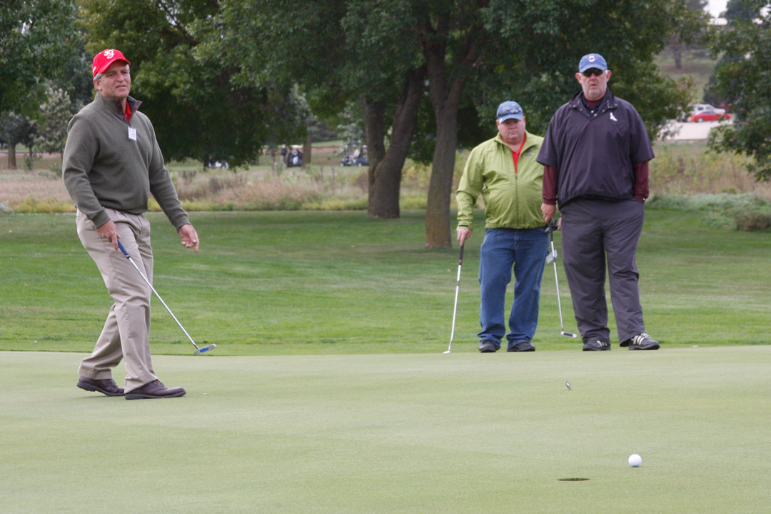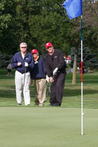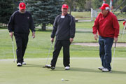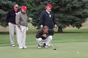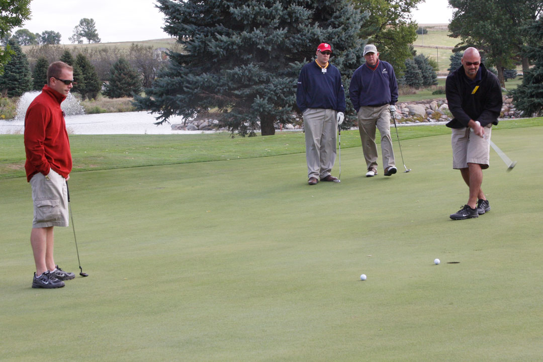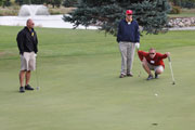 Wednesday's 18-hole Scramble Tournament was the big event at the GOMACO Invitational. The computer selected the four-person teams and assigned each team to one of four courses. Each team consisted of one A, B, C and D player. Everyone hits every shot in our Scramble Tournament, which is a fun format for all skill levels. After the Opening Ceremony and $5,000 Putt, the teams headed out to their assigned course, either Ida Grove, Holstein, Mapleton or Odebolt. Each course was a separate tournament, with its own flight winners and an overall champion. The winning team from each course progressed to the "Grand" Champion Shoot-Out later in the day in Ida Grove.