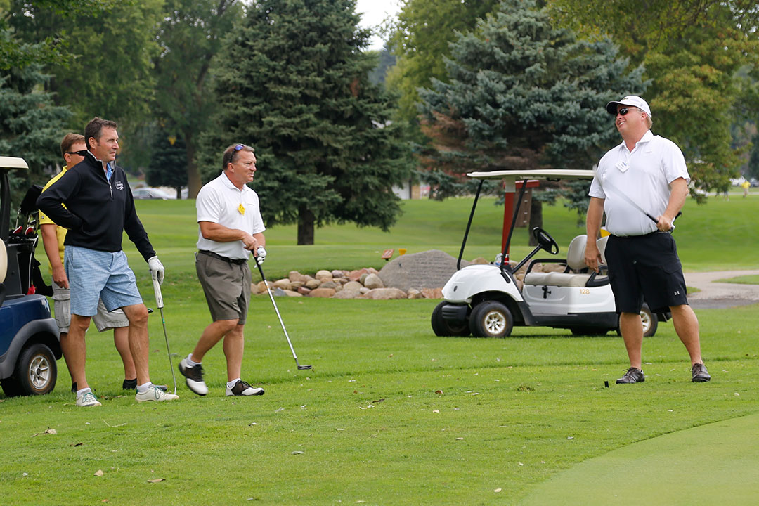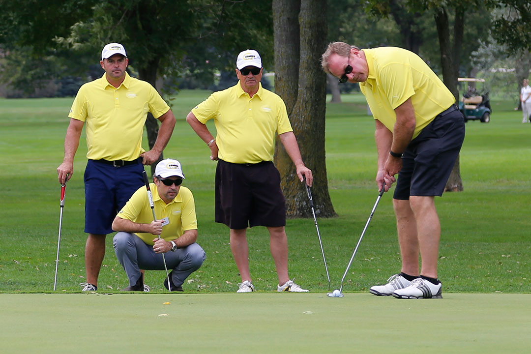 Winning first place in the Ida Grove Scramble Tournament was the foursome of Tom Schmitt of Concrete Foundations, Inc., Kent Godbersen of GOMACO Corporation, Sam Clark of Texas Sterling, and Kelly Steeves of Leica Geosystems, Inc. They finished the Ida Grove tournament with a score of 60, which was 10 under the course par of 70.