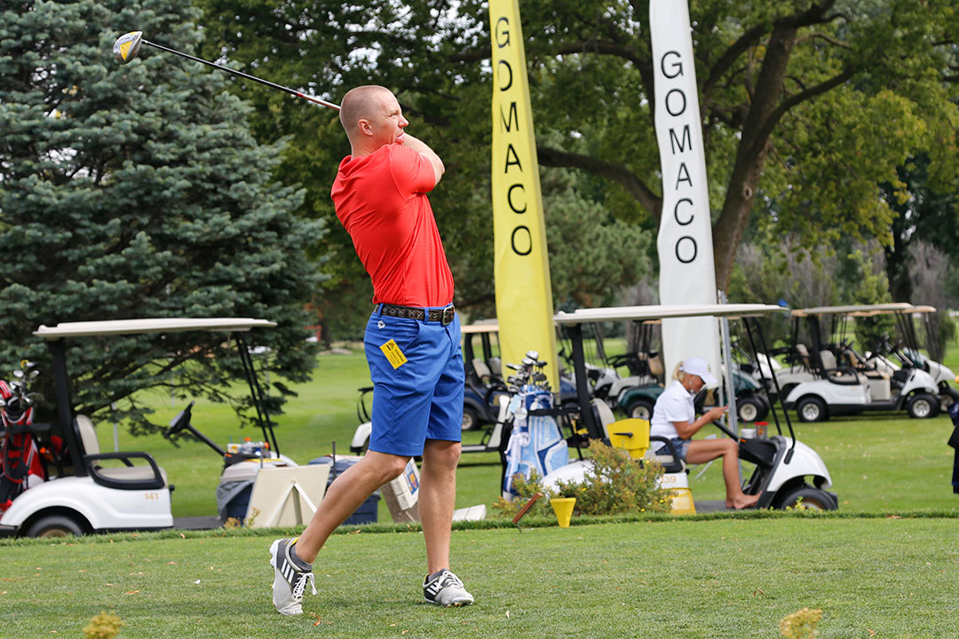 Wednesday's 18-hole Scramble Tournament was the main event at GOMACO Invitational #34. The computer selected the four-person teams, and assigned them to one of four courses. Each team consisted of one A, B, C, and D player. Everyone hit every shot, which made it a fun format for all skill levels. Each course (Ida Grove, Holstein, Mapleton and Odebolt) was a separate tournament, with its own flight winners and an overall champion. The winning team from each course went on to compete in the "Grand" Champion Shoot-Out later in the day in Ida Grove.
