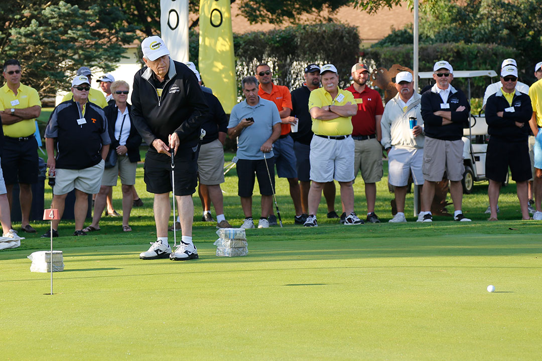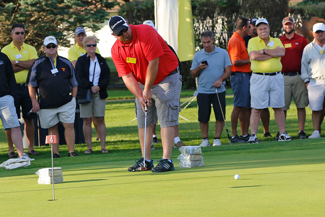 The names of five guests were drawn to compete in this exciting competition on Wednesday morning, where one person could take home $5,000! This year's participants in the $5,000 Putt were Ryan Grathwohl of ESS, Charlie Knudsen of Concrete Technologies, Inc., Kane Nordmeyer of Paulsen, Inc., Charlie Weaver of Weaver-Bailey Contracting, and Martin Rangel of RGG United Contractors Inc. After a short putt-off hosted by Rich Smith, GOMACO Vice President of Administration and Finance, Charlie Knudsen earned the honor of attempting to sink a 50-foot putt worth $5,000. Charlie had an amazing putt, but the prize went unclaimed at #34.