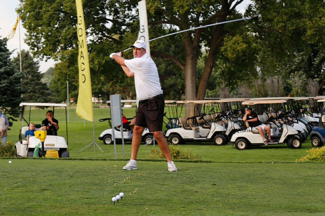 Trick-shot artist Brad Denton was the special entertainment at GOMACO Invitational #34. His show kicked-off after the conclusion of the Contractors' Shoot-Out. Brad combined teaching swing techniques with trick-shots and unique clubs. For his finale, Brad hit with a 10-foot driver.