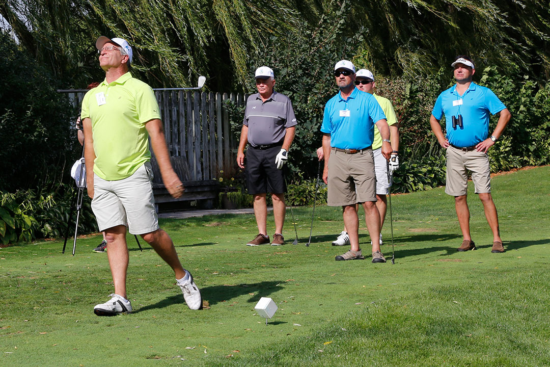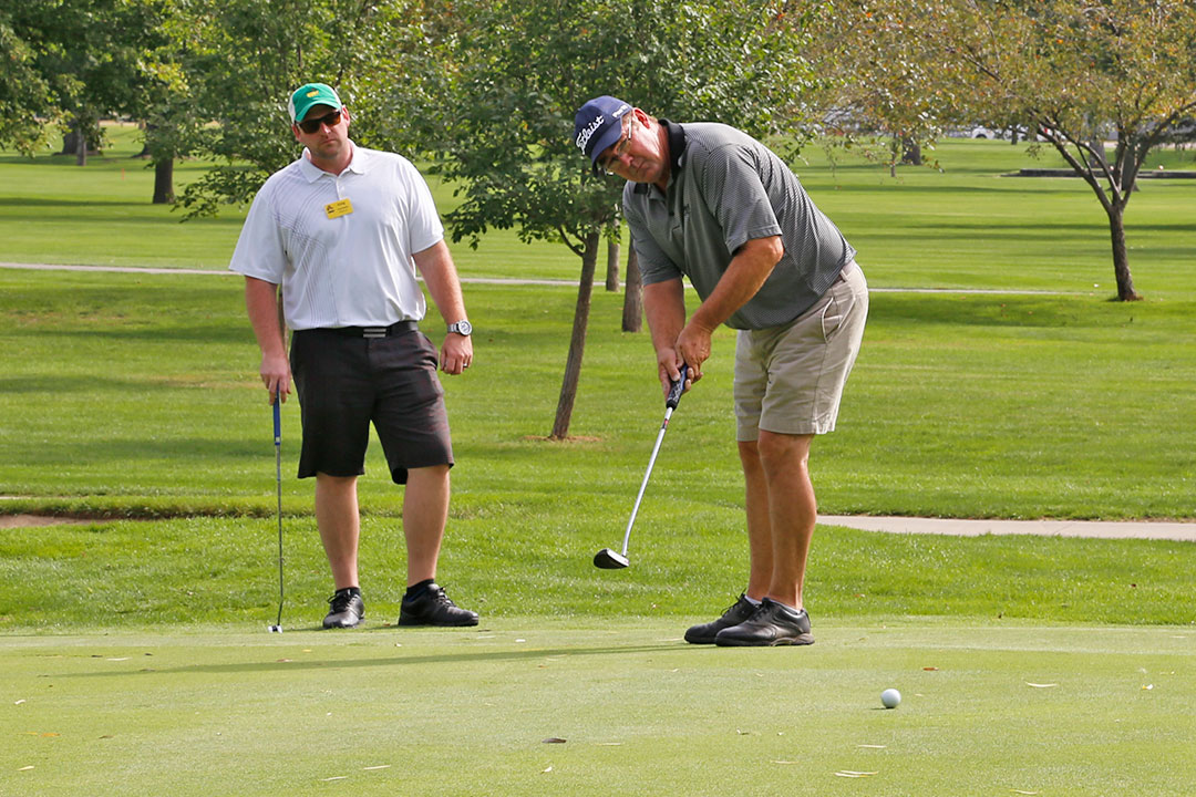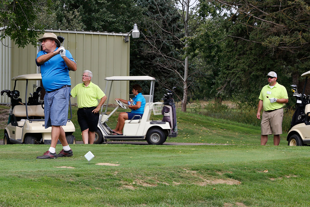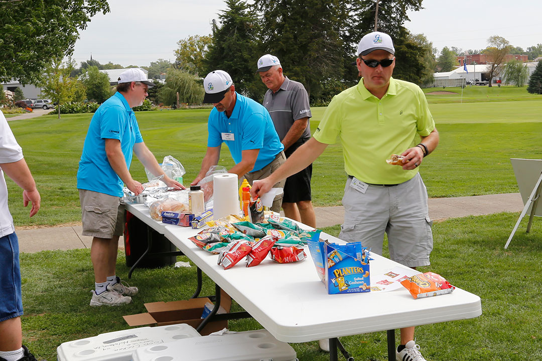 Wednesday's 18-hole Scramble Tournament was the main event at GOMACO Invitational #35. The computer selected the four-person teams, and assigned them to one of four courses. Each team consisted of one A, B, C, and D player. Everyone hit every shot, which made it a fun format for all skill levels. Each course (Ida Grove, Holstein, Mapleton and Odebolt) was a separate tournament, with its own flight winners and an overall champion. The winning team from each course went on to compete in the "Grand" Champion Shoot-Out later in the day in Ida Grove.