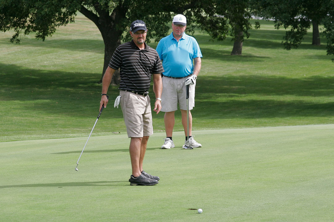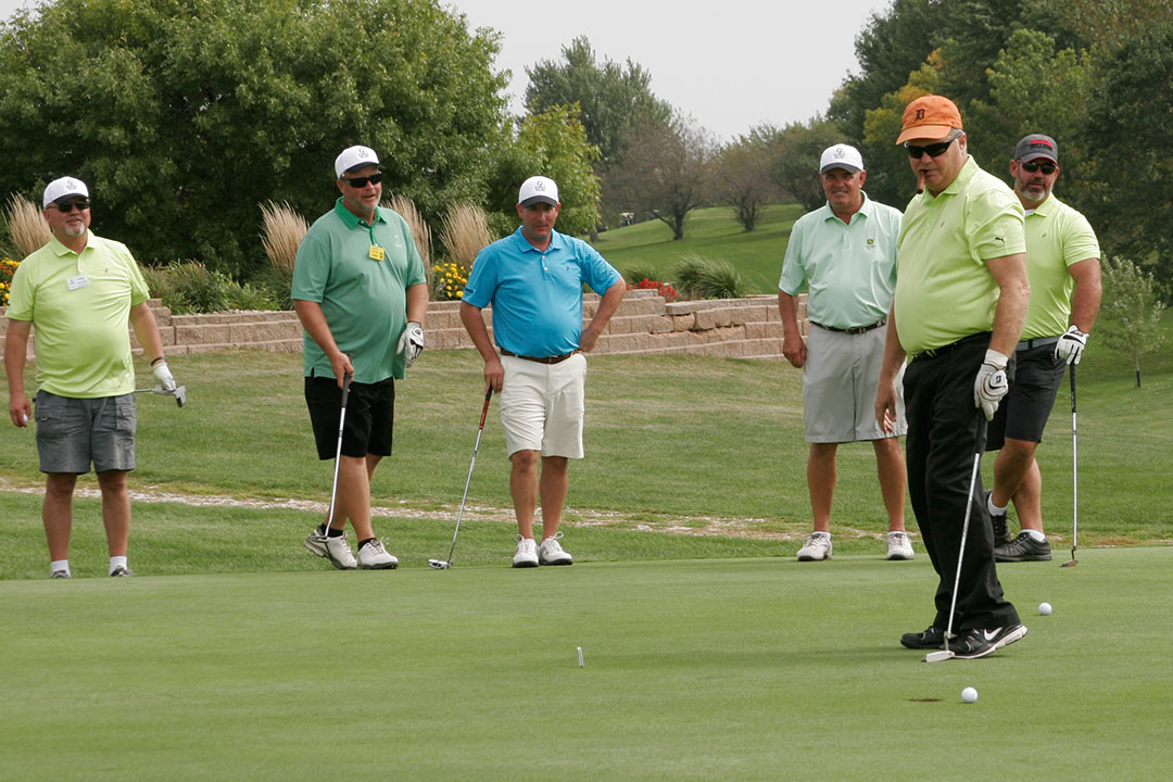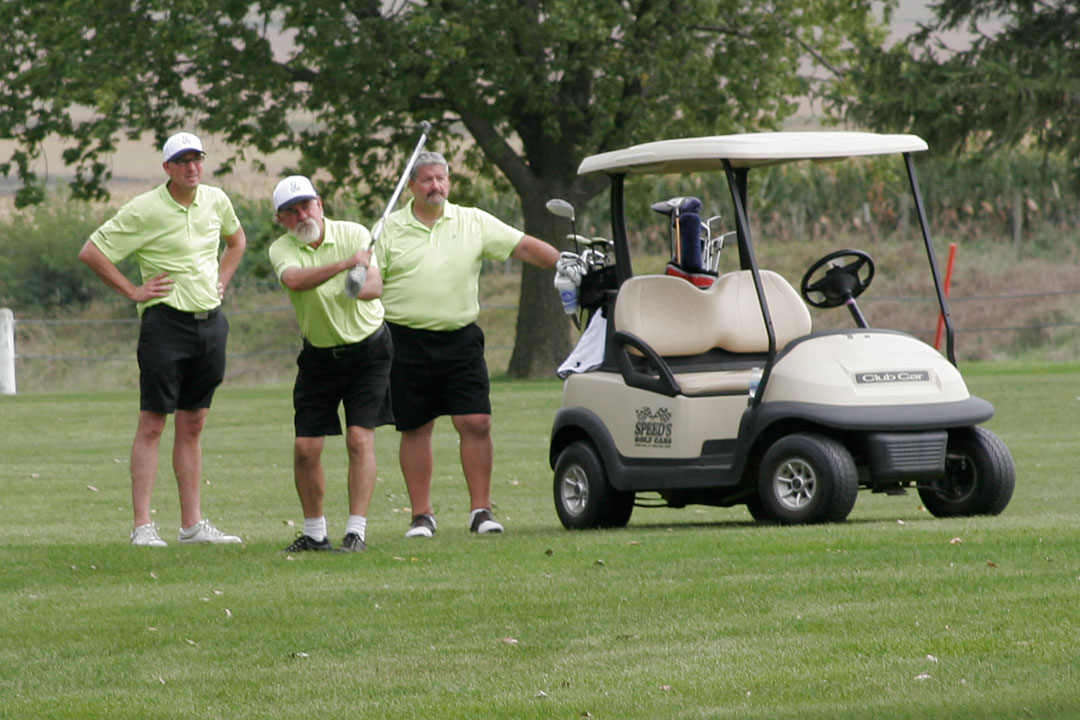 Wednesday's 18-hole Scramble Tournament was the main event at GOMACO Invitational #35. The computer selected the four-person teams, and assigned them to one of four courses. Each team consisted of one A, B, C, and D player. Everyone hit every shot, which made it a fun format for all skill levels. Each course (Ida Grove, Holstein, Mapleton and Odebolt) was a separate tournament, with its own flight winners and an overall champion. The winning team from each course went on to compete in the "Grand" Champion Shoot-Out later in the day in Ida Grove.