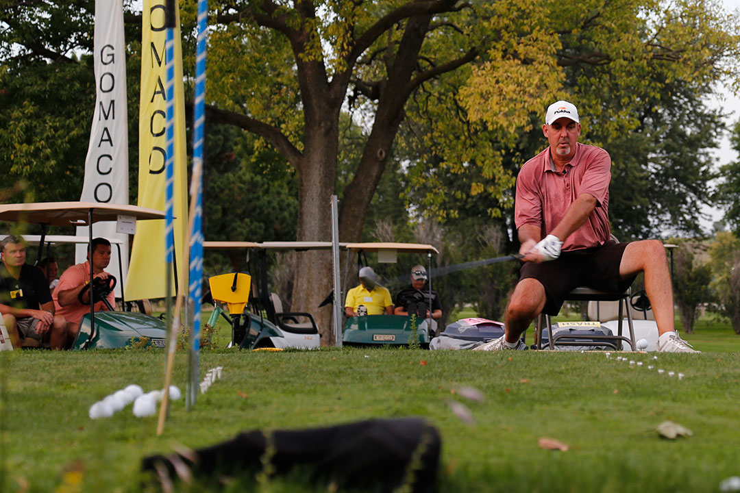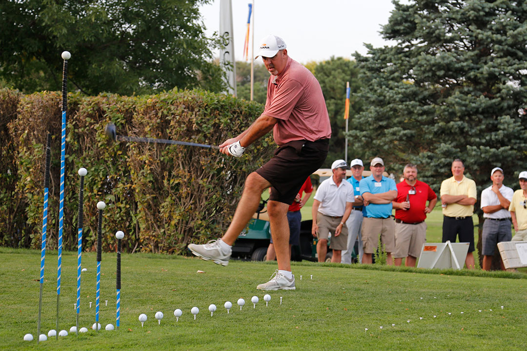 Trick-shot artist Brad Denton provided the special entertainment and kept us laughing at GOMACO Invitational #35. His show kicked-off after the conclusion of the Contractors' Shoot-Out. Brad combined teaching swing techniques with trick-shots and unique clubs. For his finale, Brad hit with a 10-foot driver.