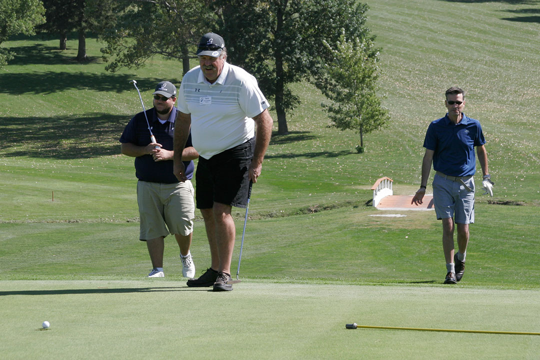 Wednesday's 18-hole Scramble Tournament was the main event at GOMACO Invitational #36. The computer selected the four-person teams, and assigned them to one of four courses. Each team consisted of one A, B, C, and D player. Everyone hit every shot, which made it a fun format for all skill levels. Each course (Ida Grove, Holstein, Mapleton and Odebolt) was a separate tournament, with its own flight winners and an overall champion. The winning team from each course went on to compete in the "Grand" Champion Shoot-Out later in the day in Ida Grove.