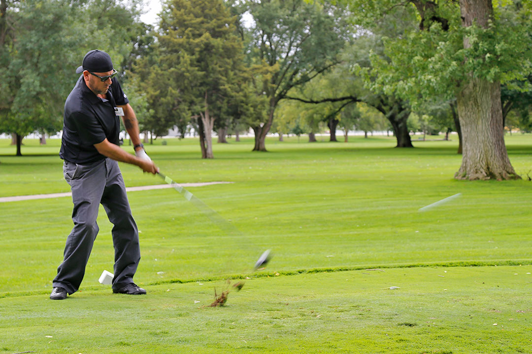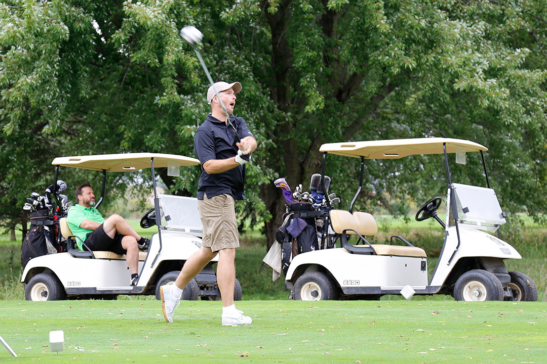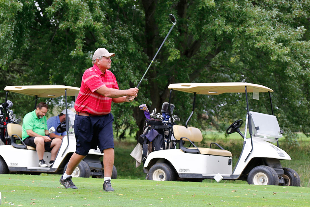 Wednesday's 18-hole Scramble Tournament was the main event at GOMACO Invitational #37. The computer selected the four-person teams, and assigned them to one of four courses. Each team consisted of one A, B, C, and D player. Everyone hit every shot, which made it a fun format for all skill levels. Each course (Ida Grove, Holstein, Mapleton and Odebolt) was a separate tournament, with its own flight winners and an overall champion. The winning team from each course went on to compete in the "Grand" Champion Shoot-Out later in the day in Ida Grove.