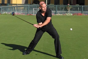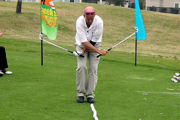 special entertainment at GOMACO Invitational #31 will be Peter "The Trick Shot Master" Jöhncke! He will delight our guests with the most unusual and extreme ways to hit a golf ball. The fast-paced show, which starts at 6:30 p.m. on Tuesday, September 18, will feature Peter's very unusual golf clubs, such as a three-headed three-wood, a driver with a link chain for a shaft, a four-headed four-wood, a nine-foot driver, and his prehistoric driver "Big Erma."