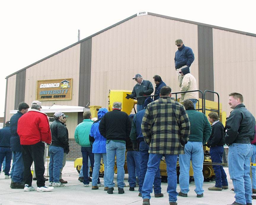 To meet the demands of increasing enrollment, the GOMACO University Paving Center was added for the 2001 class season. The classroom holds 44 students, and the training bay is equipped with a training simulator. Classes at the Paving Center focus on mainline paving, 3D machine guidance, and the IDBI. The Paving Center is located one short block from the administrative GOMACO University building, so students may walk back and forth between the buildings for meals and other activities.
