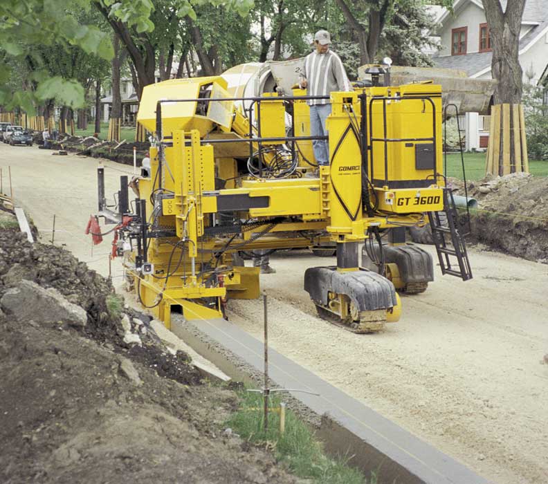 Pourex Ltd. used their driveway blockout on their GT-3600 to slipform curb and gutter in Winnipeg, Manitoba, Canada.