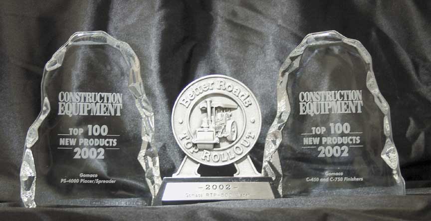 The RTP-500 rubber-tracked placer was named a "Top Rollout" and one of the 50 most significant new products for 2002 by Better Roads magazine. The magazine logged approximately 400 product introductions and changes between the November 2001 and October 2002 issues.