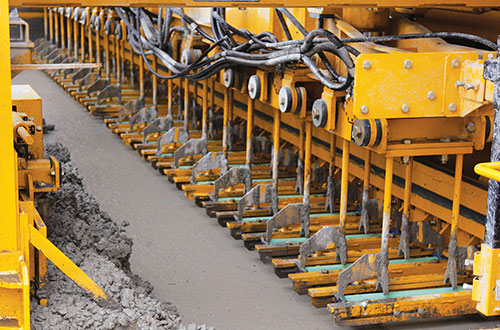 The GSI also helps determine the optimum paving speed for maximum rideability by providing instant feedback on variable factors including the concrete itself. McNeil Brothers’ production averages 250 cubic yards (191 m3) an hour on I-10.