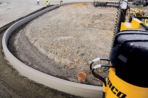 It moves well and on this job we have 180 acres (72.8 ha) here, so on any given day we might be on one end or the other,” Pierson said. “The maneuverability is amazing, especially with the slew drives and turning these tight radii. The tightest radius we’ve poured so far has been four feet (1.2 m). It’s amazing how the 3300 will flow around the radius and do what it does.”