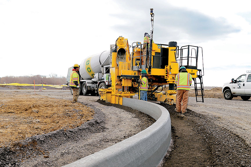 • GOMACO’s 3300 can slipform multiple applications such as curb & gutter, safety barrier, sidewalk, and undermounted slipform paving.