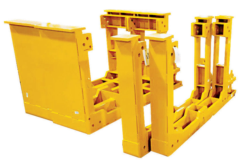 • Pivoting mold mounting beam to eliminate stress points, created by crowning the mold.