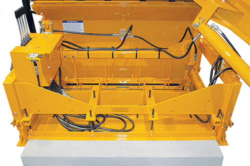 The mold on the GT-3200 sidewalk paver can be equipped with a hydraulic bar inserter and pressure-compensated sideplates.