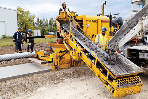 The GT-3200 sidewalk paver can slipform widths up to 3.66 meters (12 ft) with a well-prepared grade.