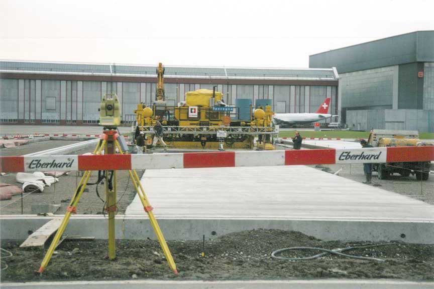 Mit einem GOMACO GHP-2800 Fertiger, der mit dem Leica 3D System ausgerüstet war, wurde der Taxi-Bereich für die grossen Jumbos betoniert. Specogna war die ausführende Baufirma für dieses Projekt.