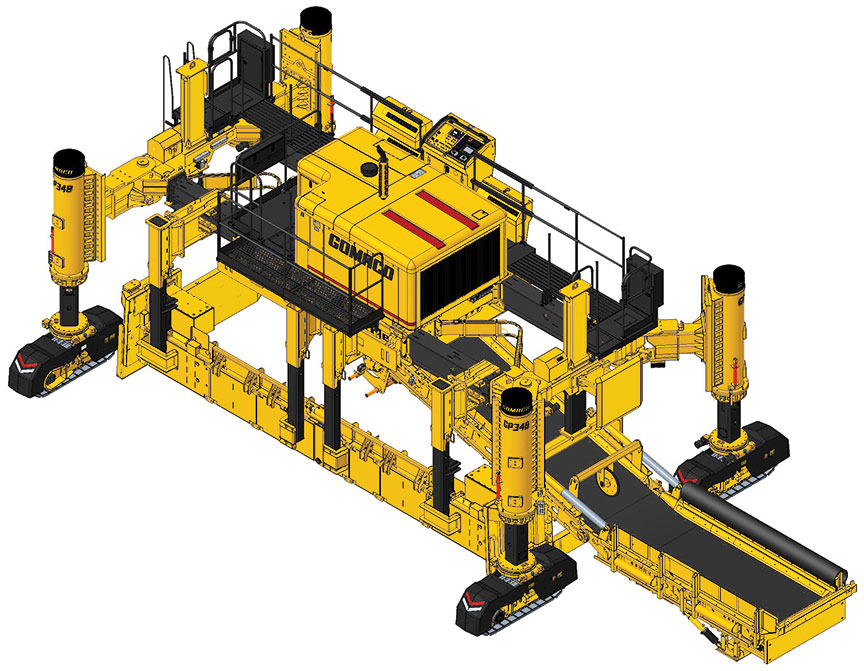 Ida Grove, IA, USA – GOMACO is building on the success of the GP360 and GP460, the industry’s first combination concrete slipform pavers and placer/spreaders on two tracks. This year at CONEXPO-CON/AGG 2026, GOMACO will introduce the GP348 four-track for enhanced jobsite and job-to-job mobility. As a placer/spreader with a 48 inch (1219 mm) belt, the GP348 will place at widths up to 36 feet (11 m) wide. As a concrete slipform paver, the GP348 will pave widths up to 30 feet (9.1 m) wide.