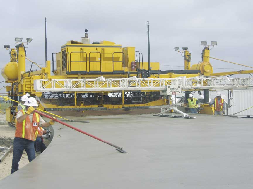This GHP-2800 two-track slipformed stringless on the Baton Rouge Metropolitan Airport. The project was 18.75 feet (5.7 m) wide and 15 inches (381 mm) thick.
